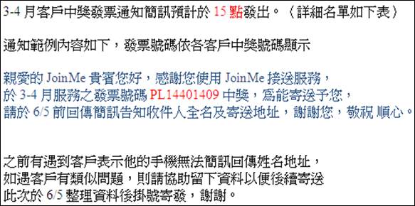 →如遇客來電詢問中獎發票事宜,煩請留下全名、寄送地址。